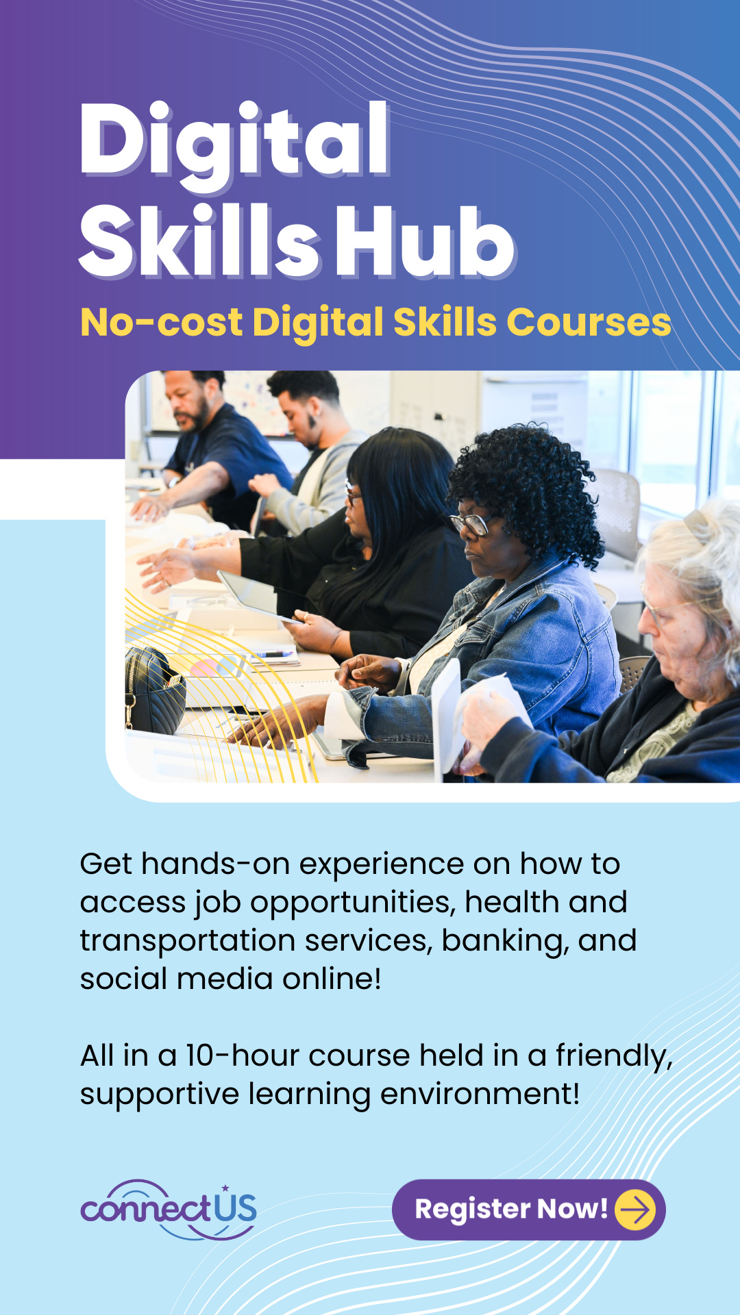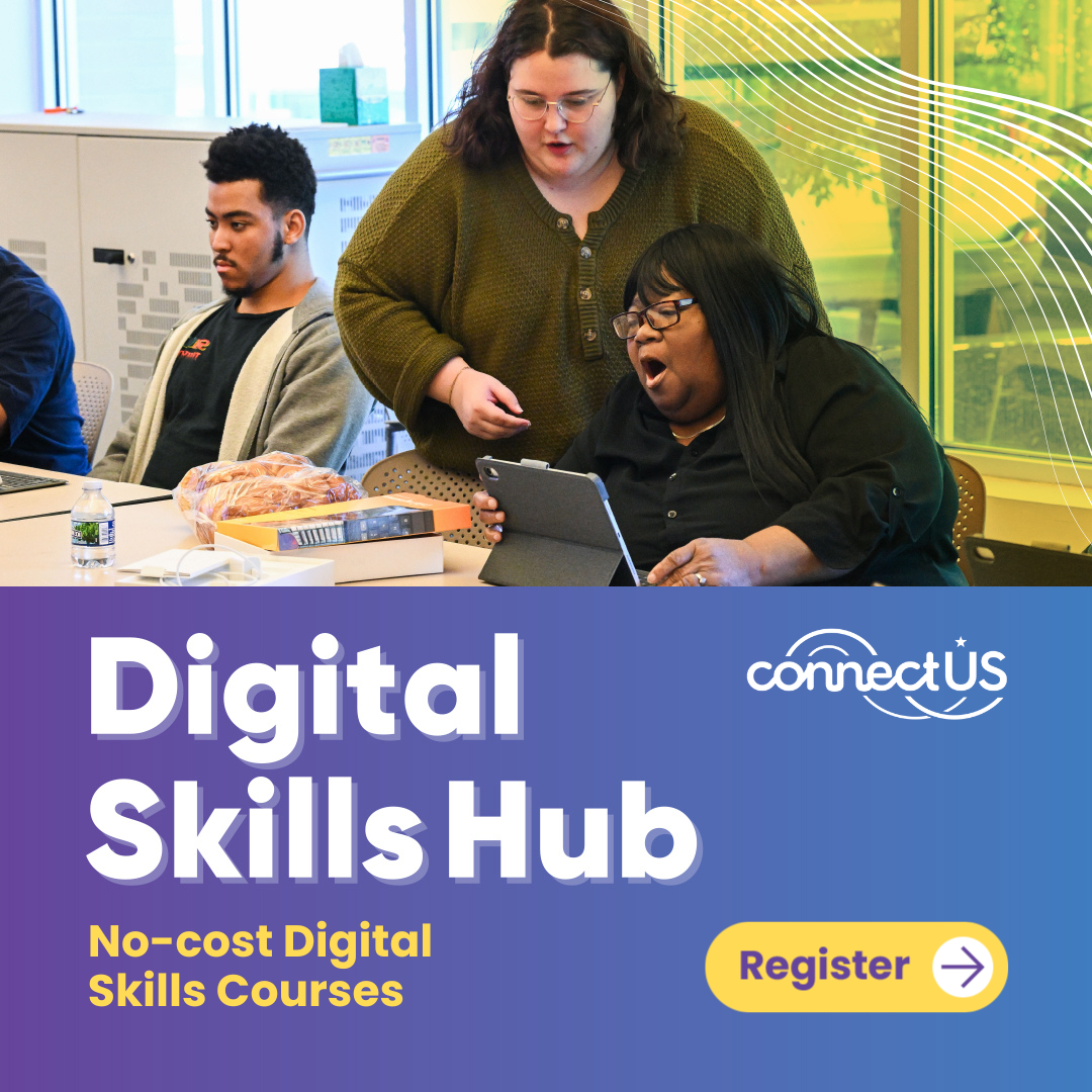 Below, you’ll find visual assets,partner logos,the ConnectUS Style Guide, and the Digital Skills Hub Marketing Toolkit, all here to help you reach your audience. You are welcome to create collateral of your own, too. To ensure consistent and professional branding, please follow the ConnectUS Logos and Style Guide. Key messaging, as well as email and social media copy templates are provided in the Digital Skills Hub Marketing Toollkit.